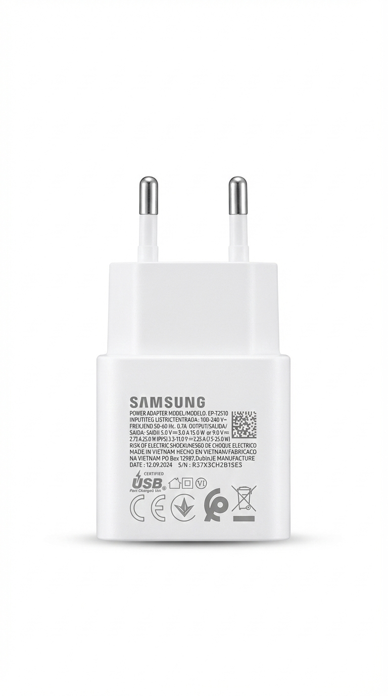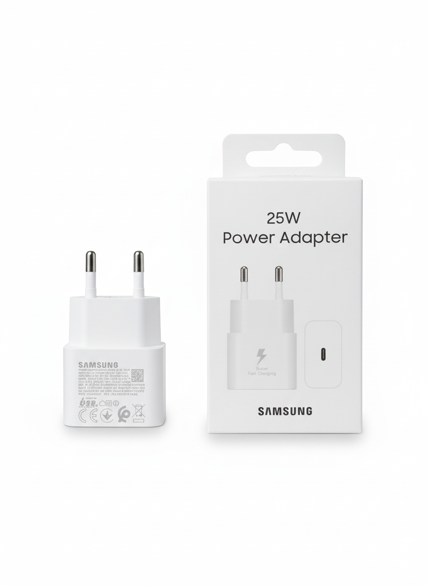 Samsung 25W Power Adapter delivers Super Fast Charging for compatible Samsung Galaxy smartphones and other USB-C devices. Its compact and lightweight design makes it ideal for daily use at home, office, or while traveling. Built with advanced safety protection to prevent overheating, overcharging, and short circuits, ensuring reliable and efficient performance every time.