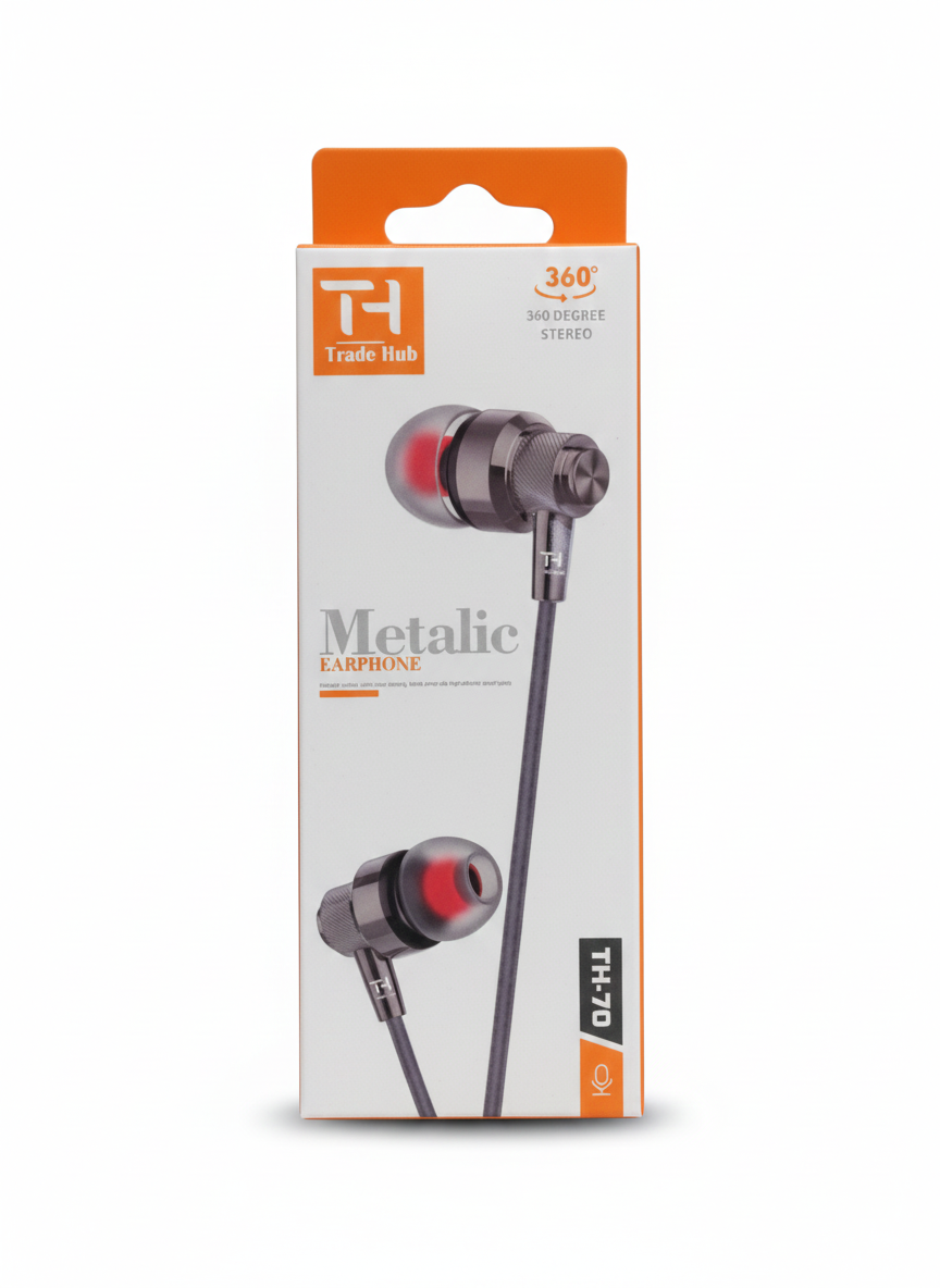 Trade Hub TH 70 Stereo Earphone is designed to deliver powerful heavy bass with clear Hi-Fi stereo sound. Equipped with a 3.5mm plug, these wired earphones are compatible with smartphones, tablets, laptops, and other audio devices. The in-ear design provides a comfortable fit and effective noise isolation, while the durable cable ensures long-lasting daily use. Ideal for music lovers who enjoy deep bass and clear audio quality.